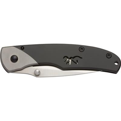 The Mountain Ti 2 by Browning keeps the proportions of the original, with a few tweaks to design that gives it a look all its own. The 2.75" blade is still deployed easily with the thumb stud, but the shape is more leaf-shaped than the original, giving it a place to rest your thumb when in use. The steel handles still show the Buckmark logo, but have a slightly more ergonomic design that makes it even easier to use.