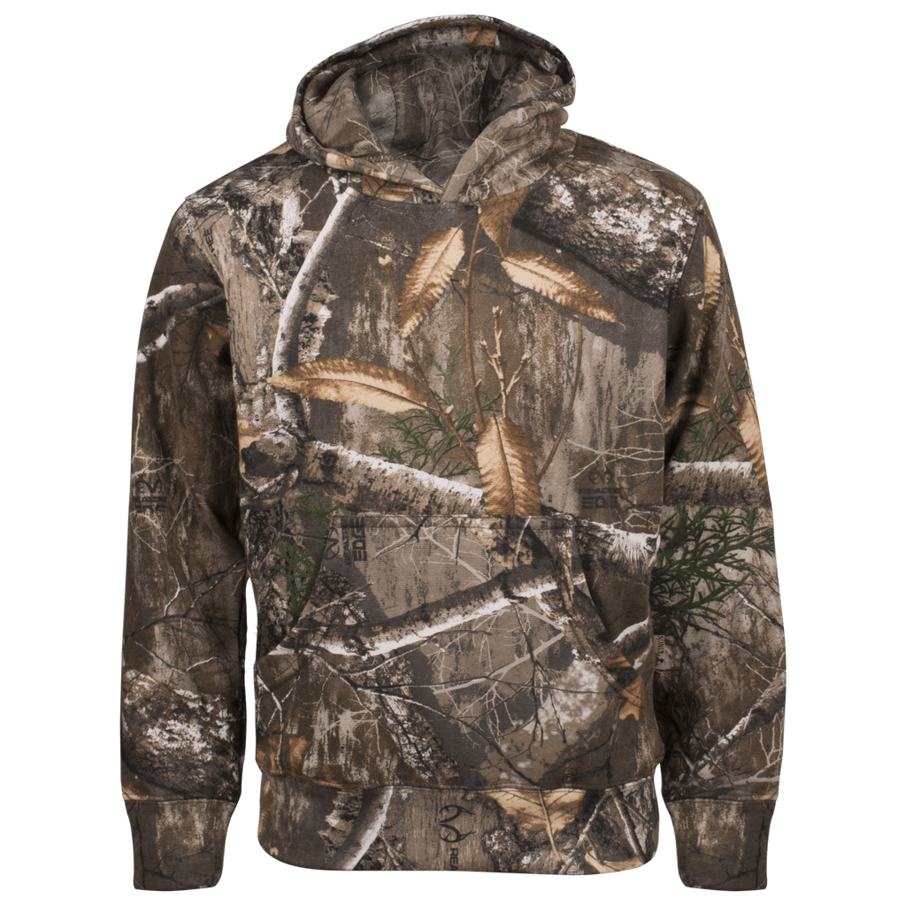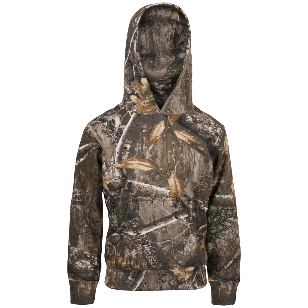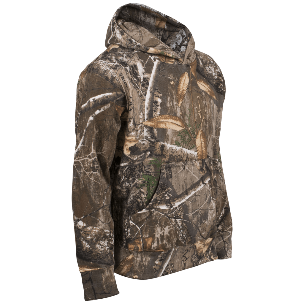 The Kids Classic Hoodie is made specifically for boys and girls with a passion for hunting. This 8.5 oz., 60/40 cotton/poly blend hooded sweatshirt is as comfortable as it is durable. Includes kangaroo front pocket and camo cuff sleeve and waist.